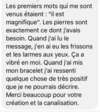 Les clients passent commande souvent pour un bracelet et une guidance, ce qui fait que dans les commentaires, ils peuvent faire allusion au message reçu en canalisation. Les clients parlent également de l'effet de l'encodage énergétique du bracelet qui n'a de ce fait pas du tout le même effet qu'un bracelet sans encodage.